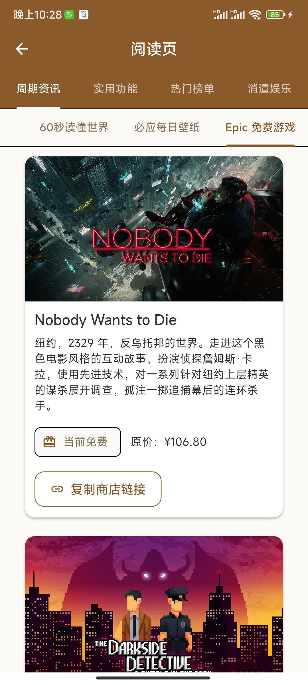 借助公共在线api, 提供即时信息如每日精炼新闻, epic免费游戏, 各app的热搜.
